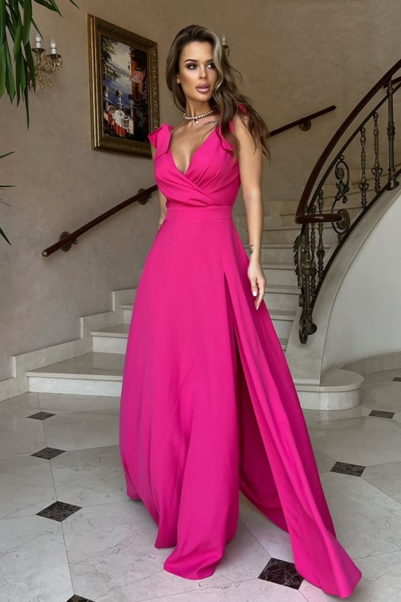 2231-07 Długa Sukienka Z Kokardami - malinowy