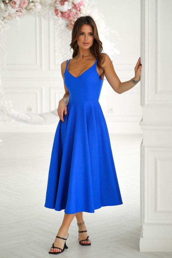 244-05-1 Sukienka Midi Na Ramiączkach - niebieski