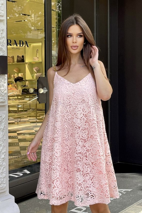 252-12 Krótka Sukienka Na Ramiączkach Z Łańcuszka - różowy
