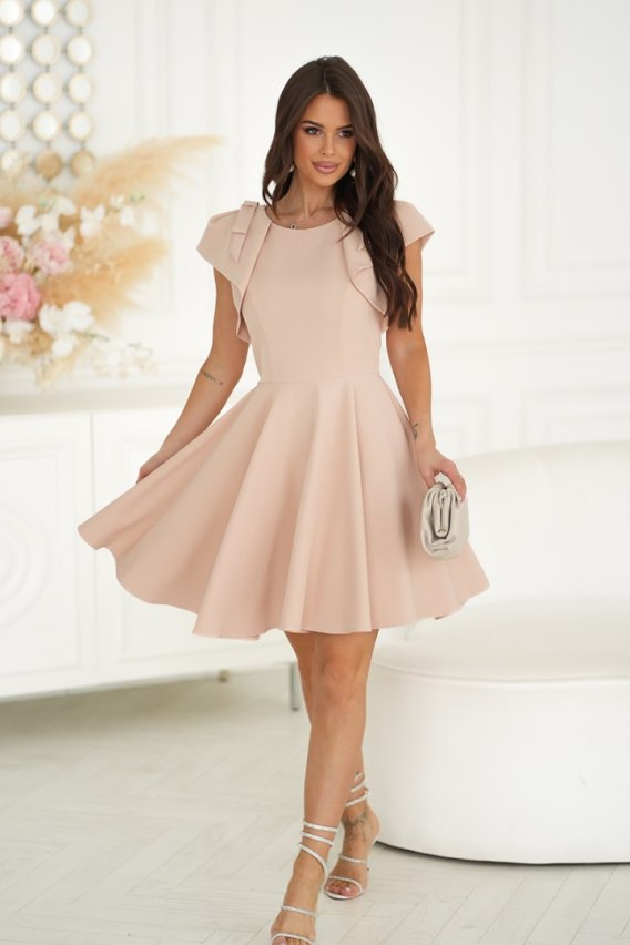 329-21 Elegancka Sukienka Z Falbanami - beżowy